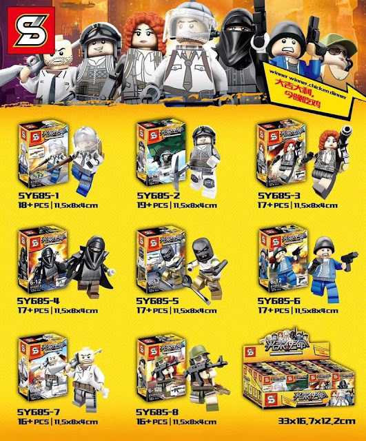Honestly though, these figs seem generic. SY685-4 seems to try and copy the famous trench coat and SY685-1 seems to copy the famous PUBG image character, but other than that these guys can pass as anything and well to be fair, most civilian/military minifigs could pass as PUBG characters.
